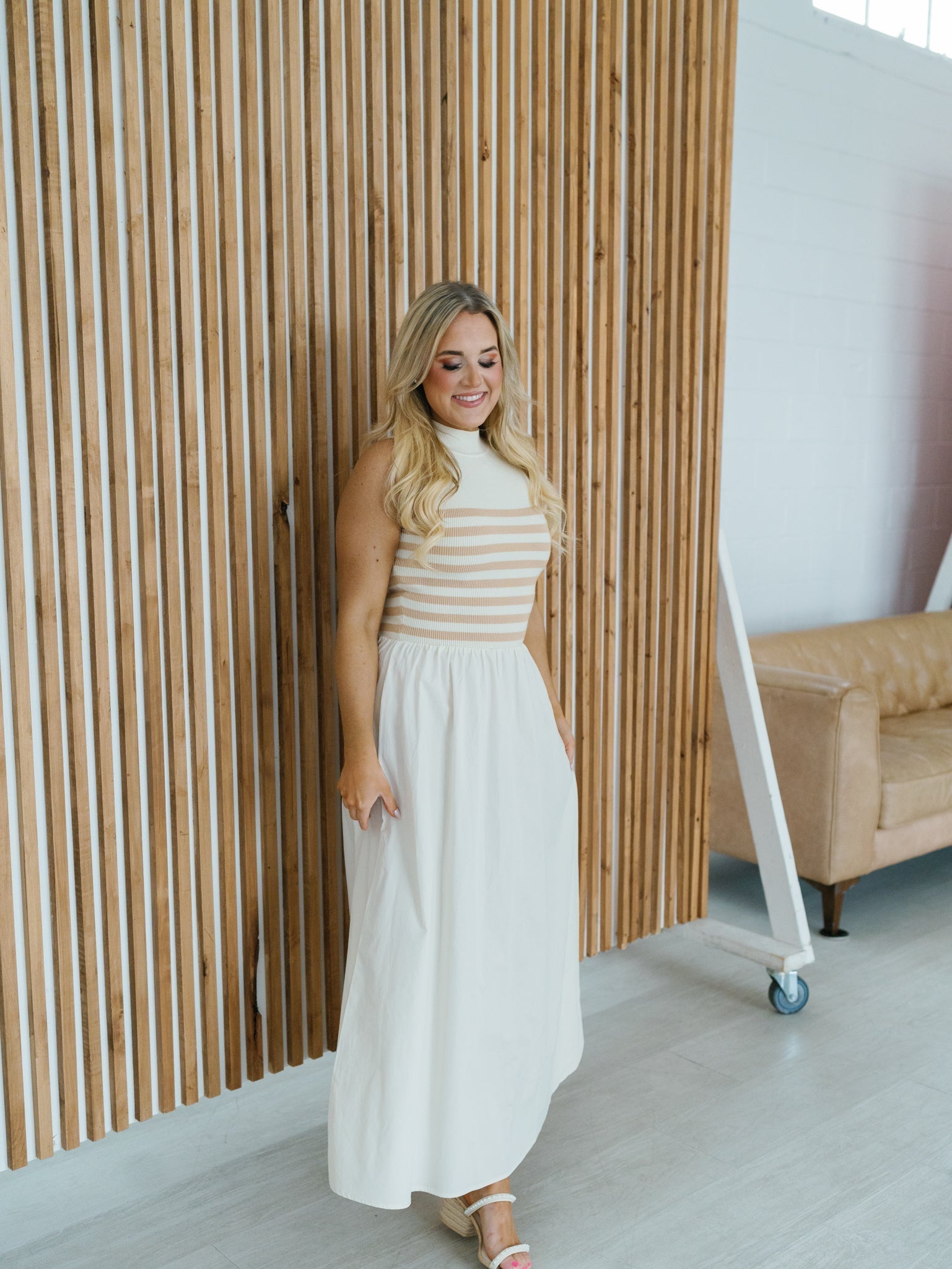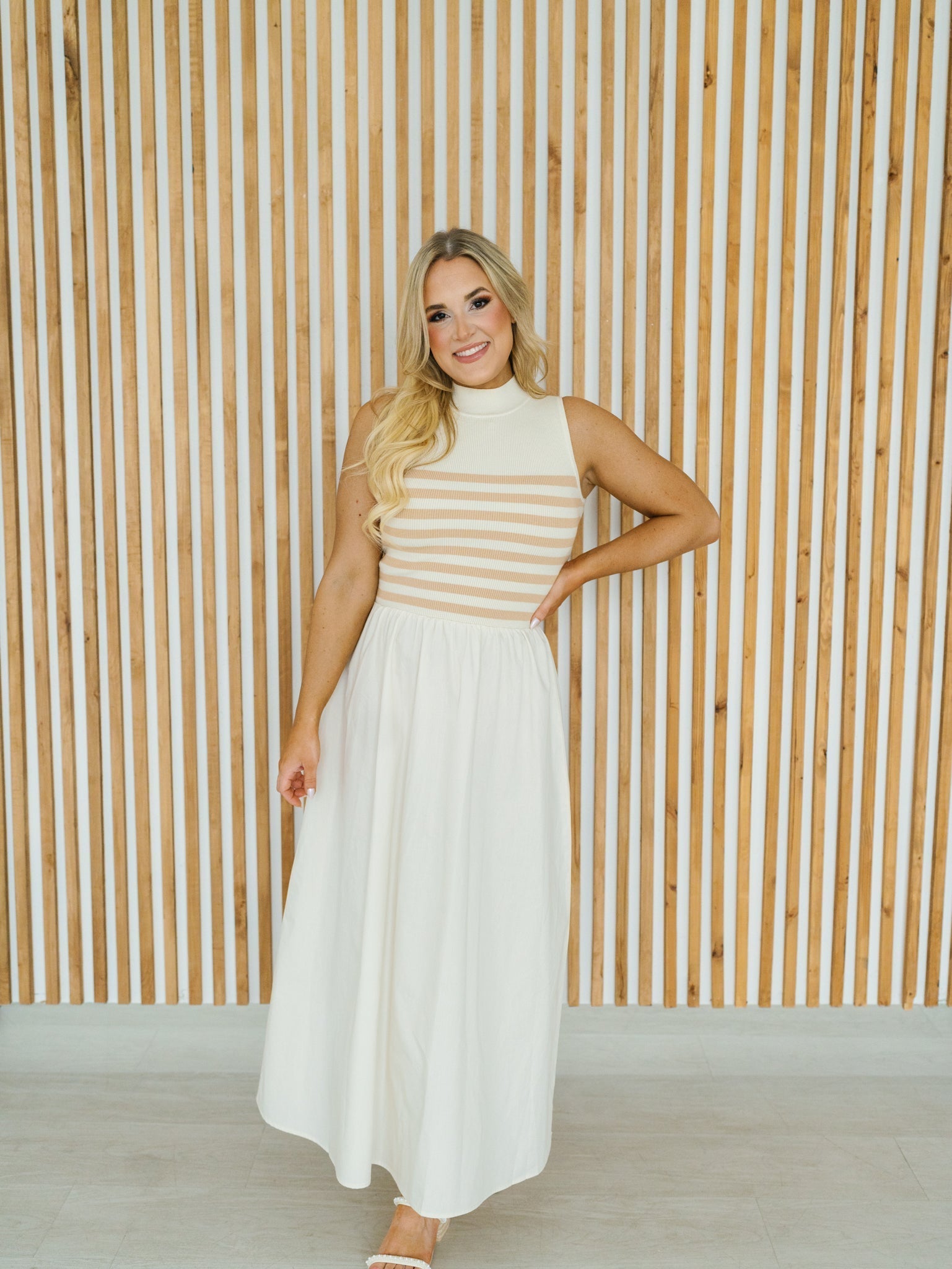 Combo dresses are here to stay and this is the perfect one to add to your collection! The "Serena Maxi Dress" features a sweater top with cream and ivory stripes and a mock neck, while the maxi length skirt is a solid, loose-fitting cream fabric. This dress would be perfect for date night, church, or for an elevated and comfortable everyday item!