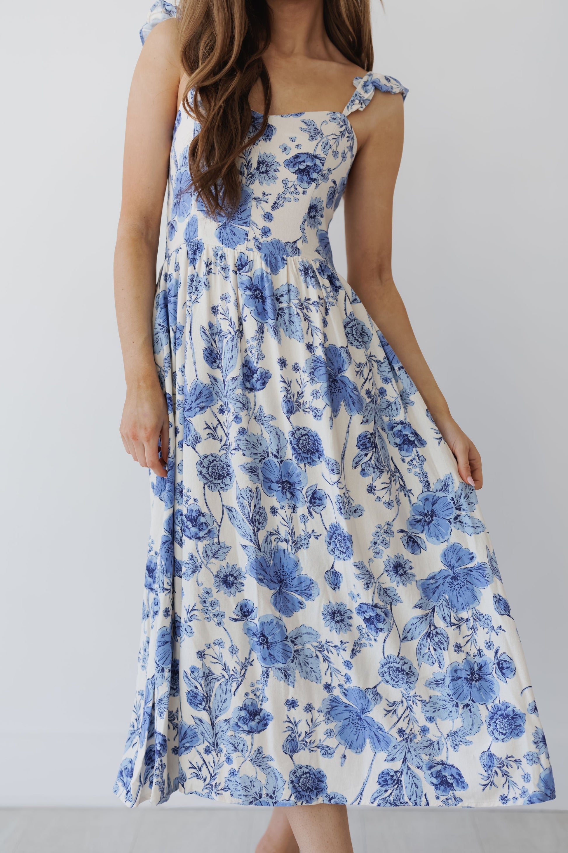 Say hello to the new "Tea Party Dress!" We can't get enough of the elevated design and feminine feel that this dress brings. The blue florals gives this dress such a coastal feel while also feeling elegant. The ruffle sleeves and simple neckline give it that effortless look for the spring. Pair this dress with a classy pair of heels!